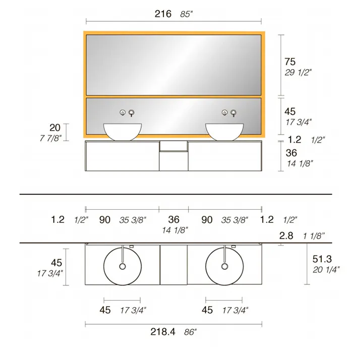Зеркало Noorth Milldue Edition Sintesi VETRA 216хh45см с 4-х сторонней светодиодной подсветкой, с отв. д/2-х есителей, 2236.216x45.2