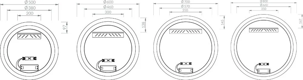 Зеркало оснащено боковой светодиодной подсветкой (LED) и готово к подключению к сети c напряжением 230 В. Устанавливается путем подвешивания на стену.