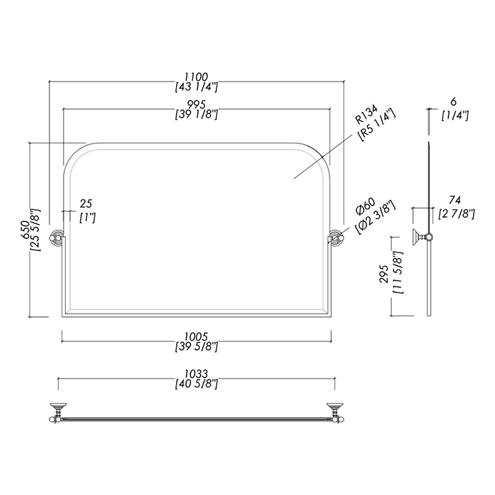 Зеркало поворотное Devon&Devon Gatsby 110x65 c держателями настенными светлое золото DEGATSBYXLOT