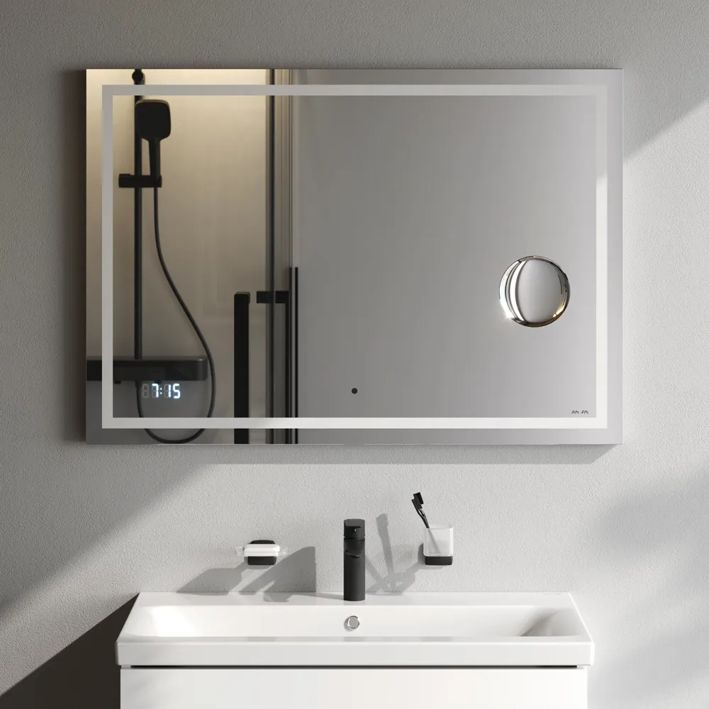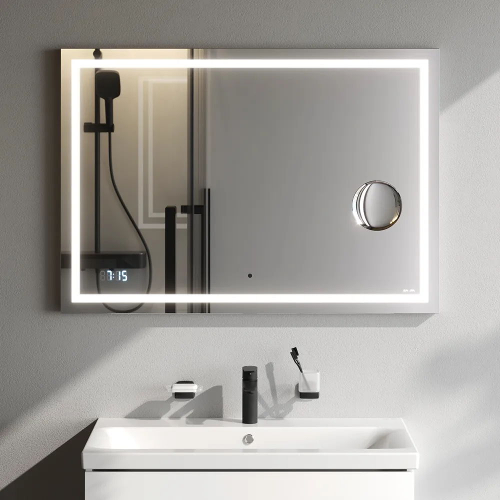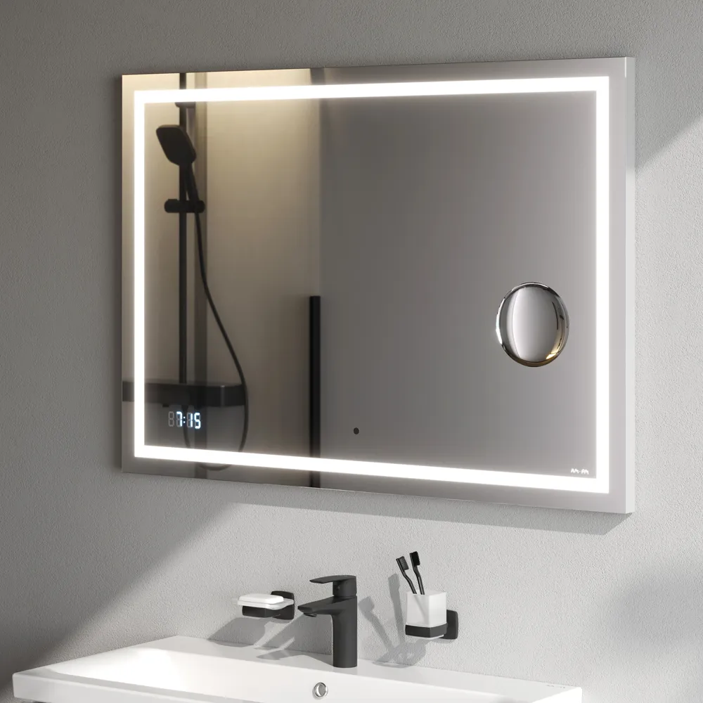 - Оснащение: подсветка, выключатель touchless, зеркало с увеличением (оптическое), часы