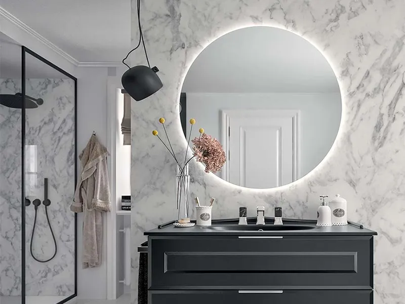 BERLONI BAGNO FILO LUCIDO FLC 1050 D LR Круглое зеркало с полированной кромкой светодиодной подсветской с тыльной стороны на раме из МДФ., Размеры; 2x105x105h