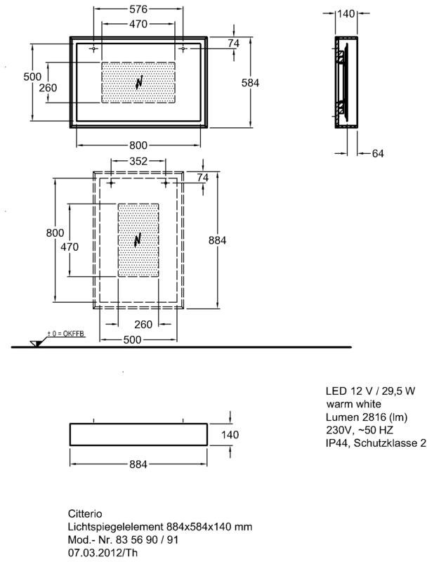 835690000 Citterio Зеркало с подсветкой 884х584х140 мм, структура рамки: светлый дуб