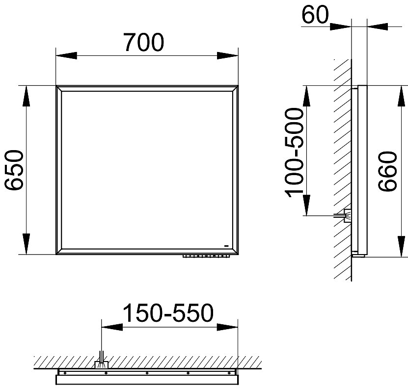 14597132000 ROYAL LUMOS Зеркало с подсветкой 700x650x60 mm, сенсорные клавиши на корпусе зеркала, 50 Watt, обрамление из алюминия, в черной элоксиров