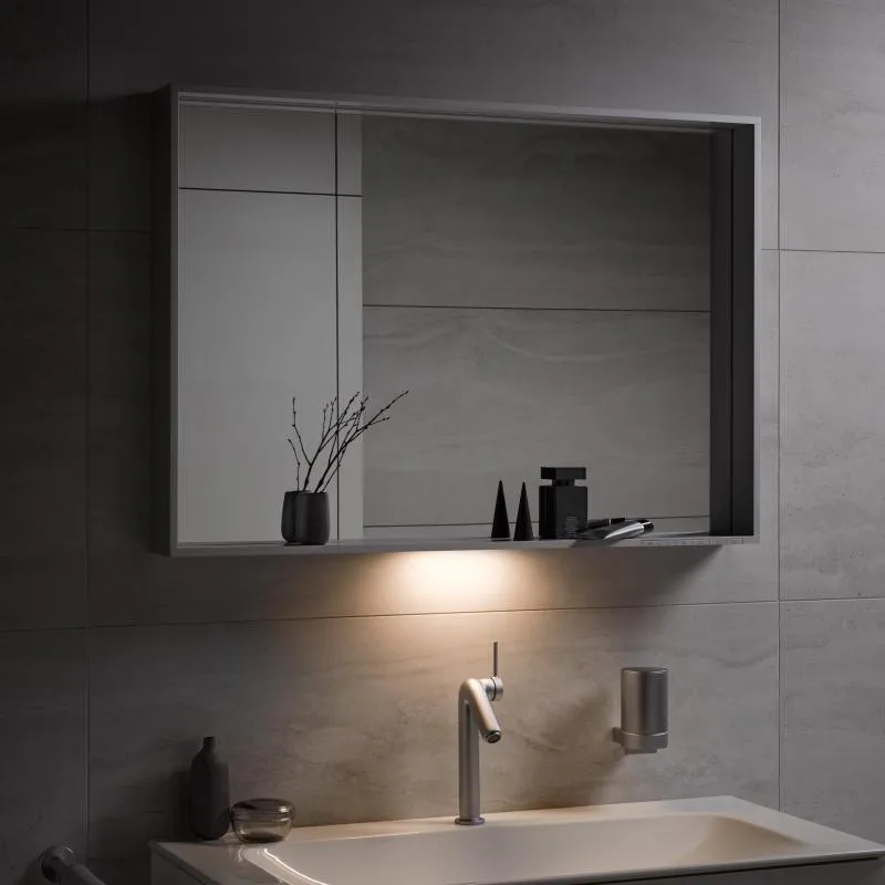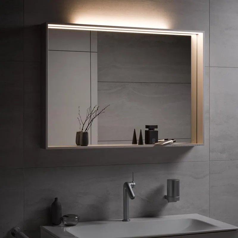 Плавная регулировка цвета подсветки от 2700 Кельвин (теплый белый) до 6500 Кельвин (яркий дневной свет), алюминиевая рама по периметру зеркала, лакированная.
