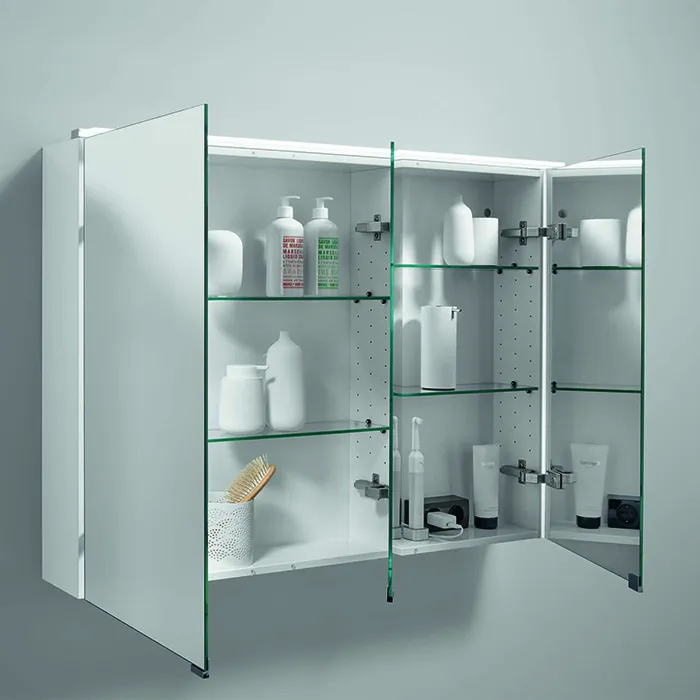 BURGBAD Eqio Зеркальный шкаф с LED подсветкой 5Вт IP24, 120х80х17см, 3 зерк. двери с обоих сторон, версия левая L, стекл полки, вкл/выкл, цвет: белый F2009 SPGT120RF2009