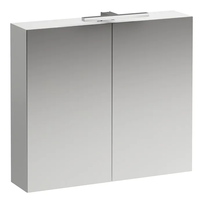 Laufen BASE Шкафчик зеркальный 800x185x700 мм, 2 дверцы, с LED-подсветкой, 2 стеклянные полки, 1 розетка, белый матовый