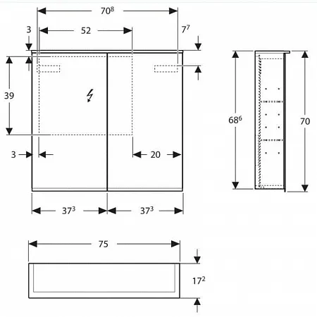 500.206.00.1 Option PLUS Зеркальный шкафчик с подсветкой 750х700х150 мм