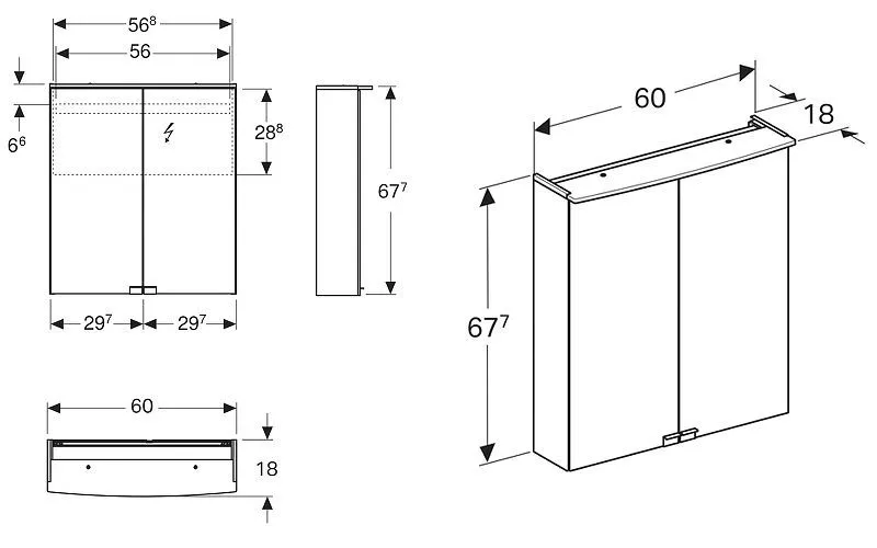 Зеркальный шкаф с подсветкой Geberit Option 60 см 500.273.00.1