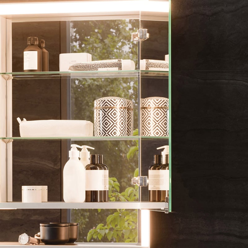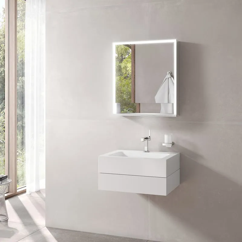 Эти покрытия обладают не только эстетическим эффектом, но и практическими преимуществами: устойчивость к пятнам и отпечаткам, лёгкость ухода, защита от влаги, долговечность. Это делает мебель Keuco привлекательным выбором даже для комнат с повышенной влажностью.