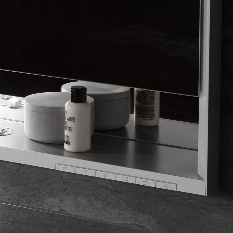общая подсветка и подсветка умывальника/полочки отдельно плавно регулируются и включаются/выключаются, бесступенчатый реостат/диммер. Светодиоды 65 Вт (срок службы > 30.000 часов горения.)
