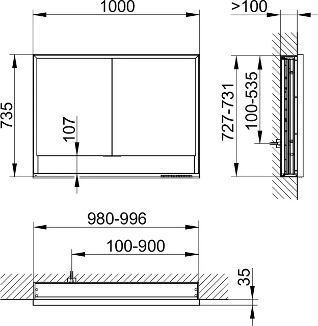 Зеркальный шкаф Keuco Royal Lumos, 14334171304, 1000х735х130 мм, к.: анодированный серебристый алюминий/зеркало