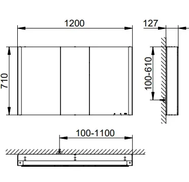 - Для монтажа на стене, 3 поворотные зеркальные дверцы из двойного