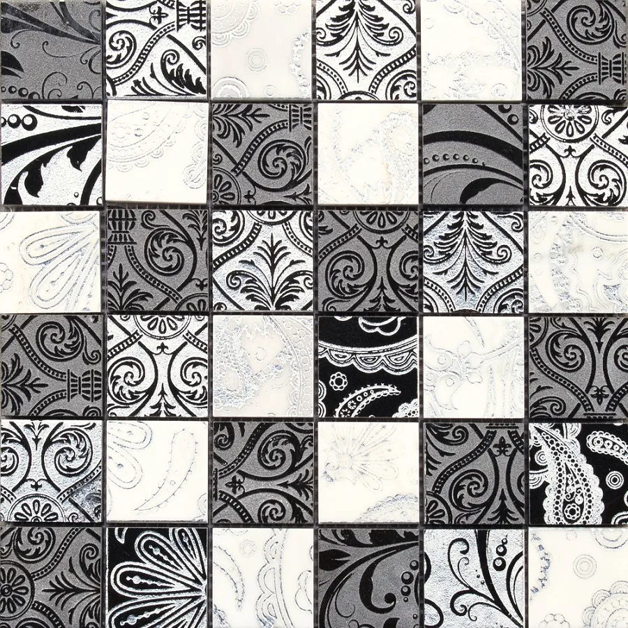 Испанская глянцевая мозаика 69MU-DN Musa Damasco Negro 30x30 с фишками квадратной формы,