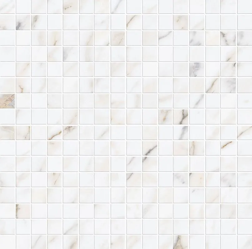 Итальянская сатинированная мозаика M8GV Allmarble Wall Golden White Satin Mosaico 40х40 с фишками квадратной формы,