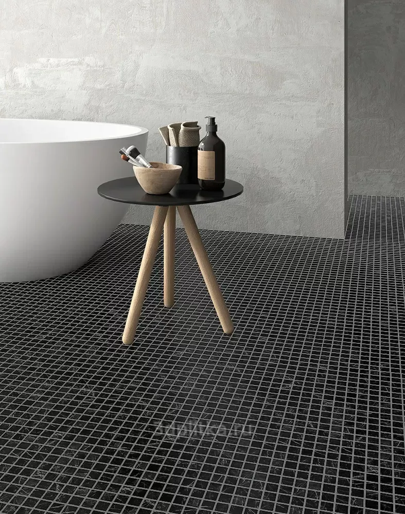 Испанская матовая мозаика Hex Supreme Marquina 30.7х31.7 с шестиугольными фишками, размером сетки 30.7x31.7, чёрного цвета. Данный вид стеклянной мозаики, в виде мелких камней, выполненный в едином цвете, подойдет на стену Вашей ванной.