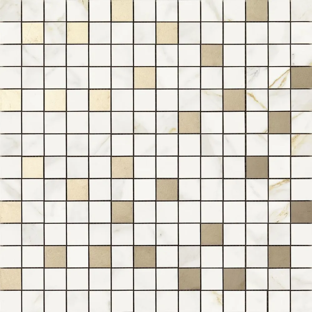 Итальянская матовая мозаика R4ZU Bistrot Mosaico Calacatta Michelangelo 40*40 с фишками квадратной формы,