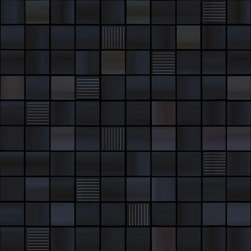 Испанская глянцевая мозаика Waves Negro Mosaico 31.6x31.6 с фишками квадратной формы,