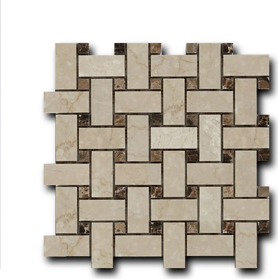 Мозаика Art Natura Marble Mosaic Basket Weave (Botticino Fiorito + Dark Imperador) 30.5x30.5