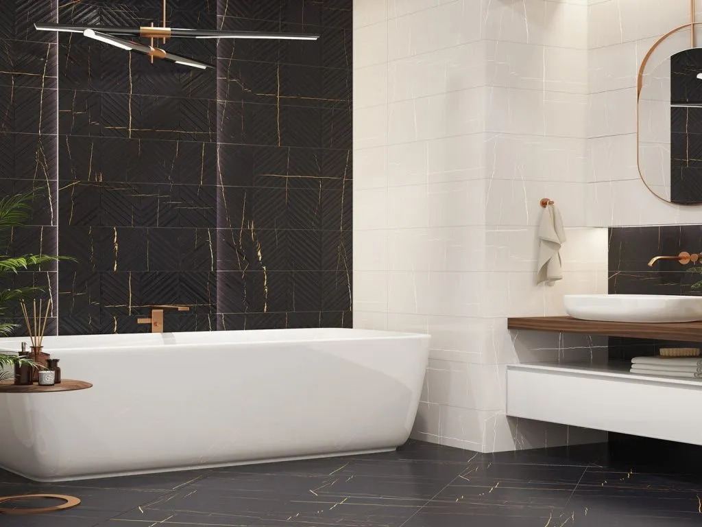 Прямоугольная форма плитки обеспечивает простоту укладки и позволяет создавать разнообразные дизайнерские решения. Глянцевая поверхность придаёт интерьеру изысканность и блеск.