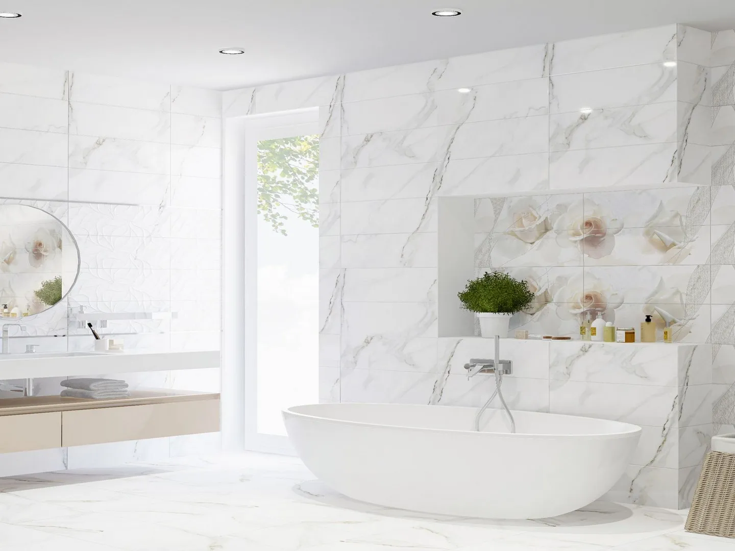 Благодаря своим размерам (48,4 см в длину и 140 см в высоту), плитка идеально подходит для облицовки стен. Она прекрасно впишется в интерьер, оформленный в стиле флористика или любом другом современном стиле.