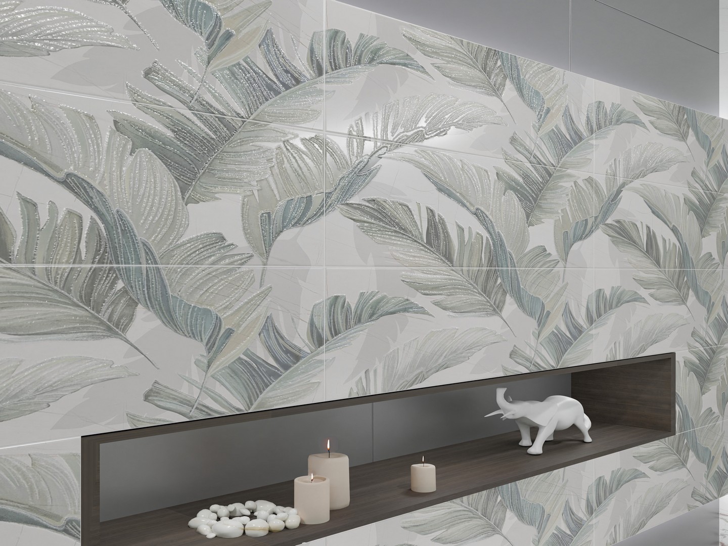 Плитка прямоугольной формы размером 24,2x70 см идеально подходит для отделки стен. Серый цвет плитки позволяет создать сдержанный и стильный интерьер, а флористический декор добавит изысканности и уюта.