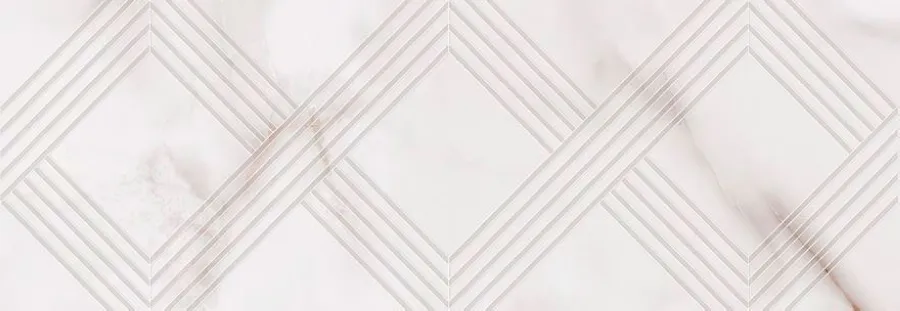 Дизайн плитки выполнен в белом цвете с геометрическим декором, что позволяет использовать её как для создания контрастных акцентов, так и для гармоничного сочетания с другими элементами интерьера. Прямоугольная форма плитки удобна в укладке и позволяет реализовать разнообразные дизайнерские идеи.
