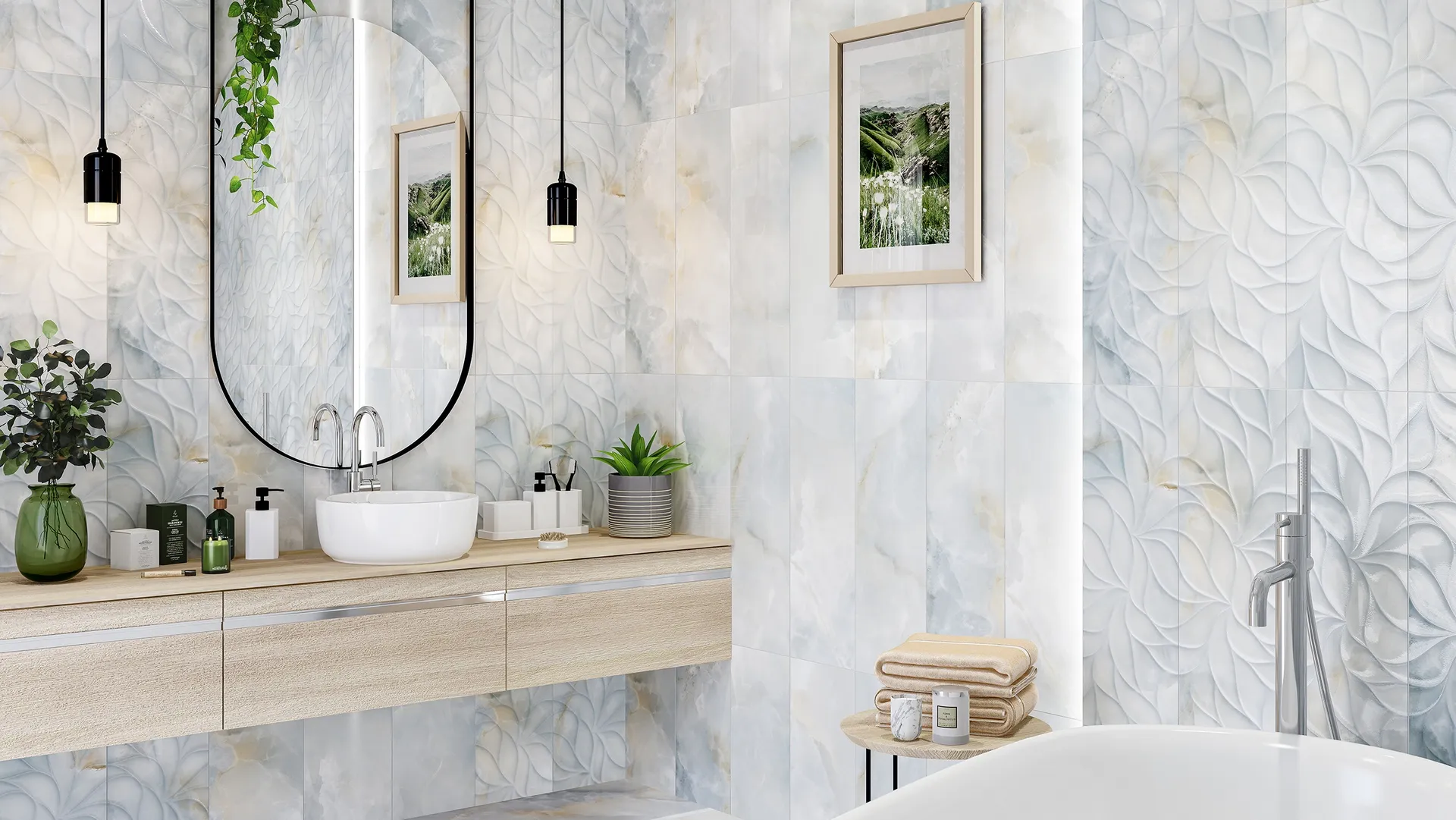 Прямоугольная форма плитки позволяет использовать её для создания разнообразных дизайнерских решений. Она идеально подходит для современных интерьеров, добавляя им элегантность и шарм.