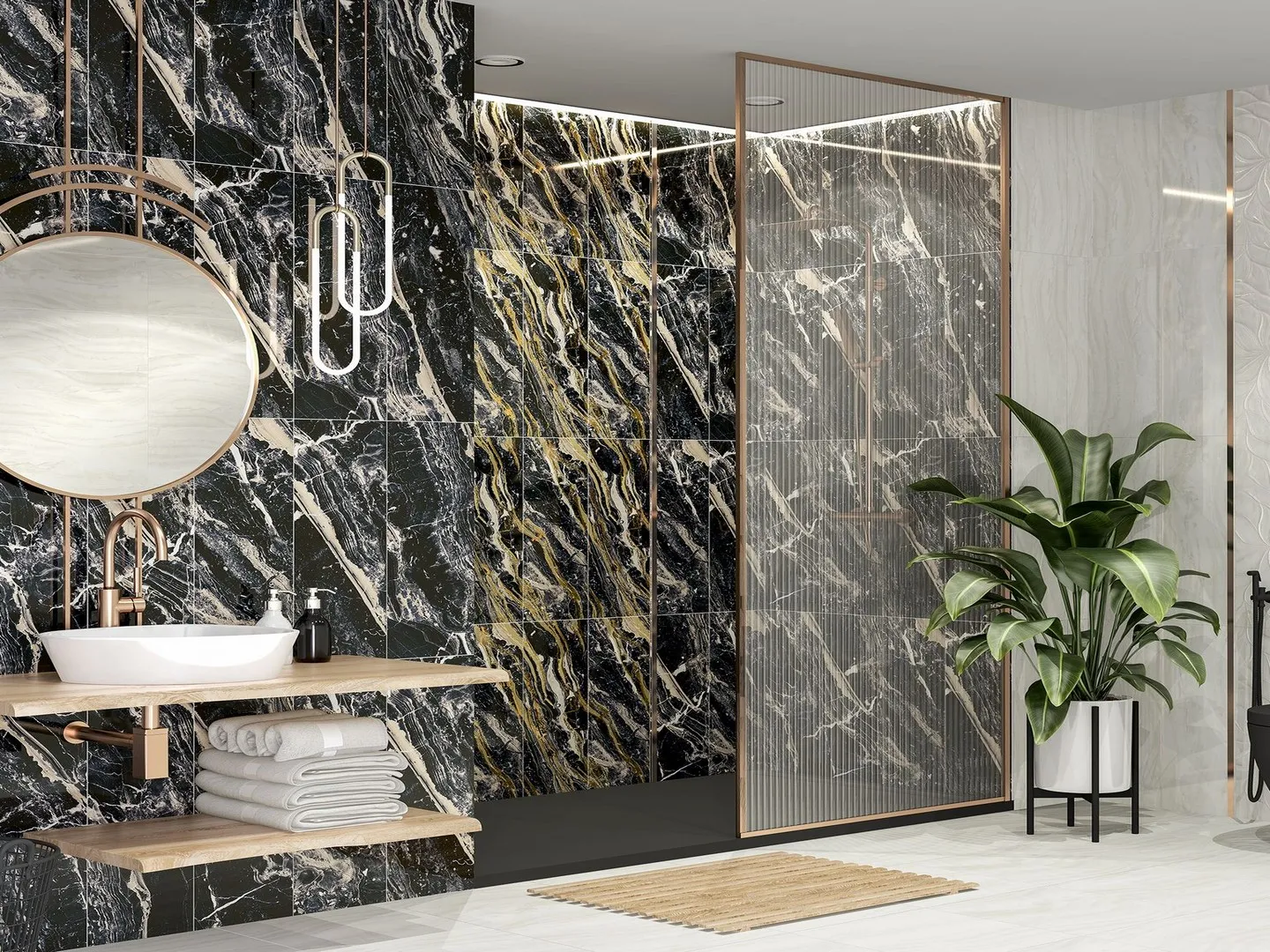Цвет плитки — чёрный, что делает её универсальным решением для различных стилей интерьера. Она гармонично сочетается с другими оттенками и материалами, позволяя создать стильный и современный дизайн помещения.