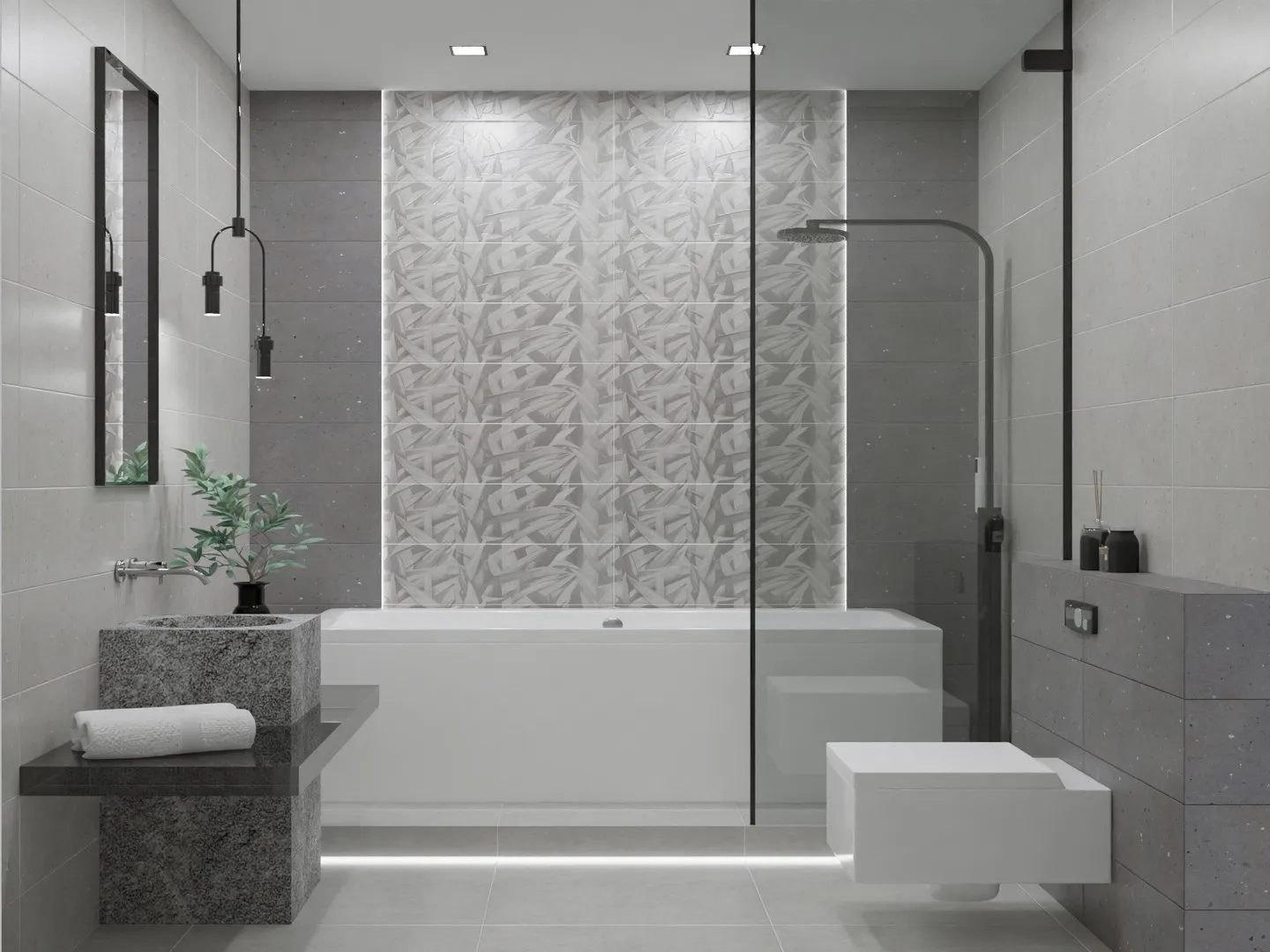 Цветовая гамма плитки — серый, который отлично сочетается с различными стилями интерьера. Она подойдёт как для классических, так и для современных дизайнов.