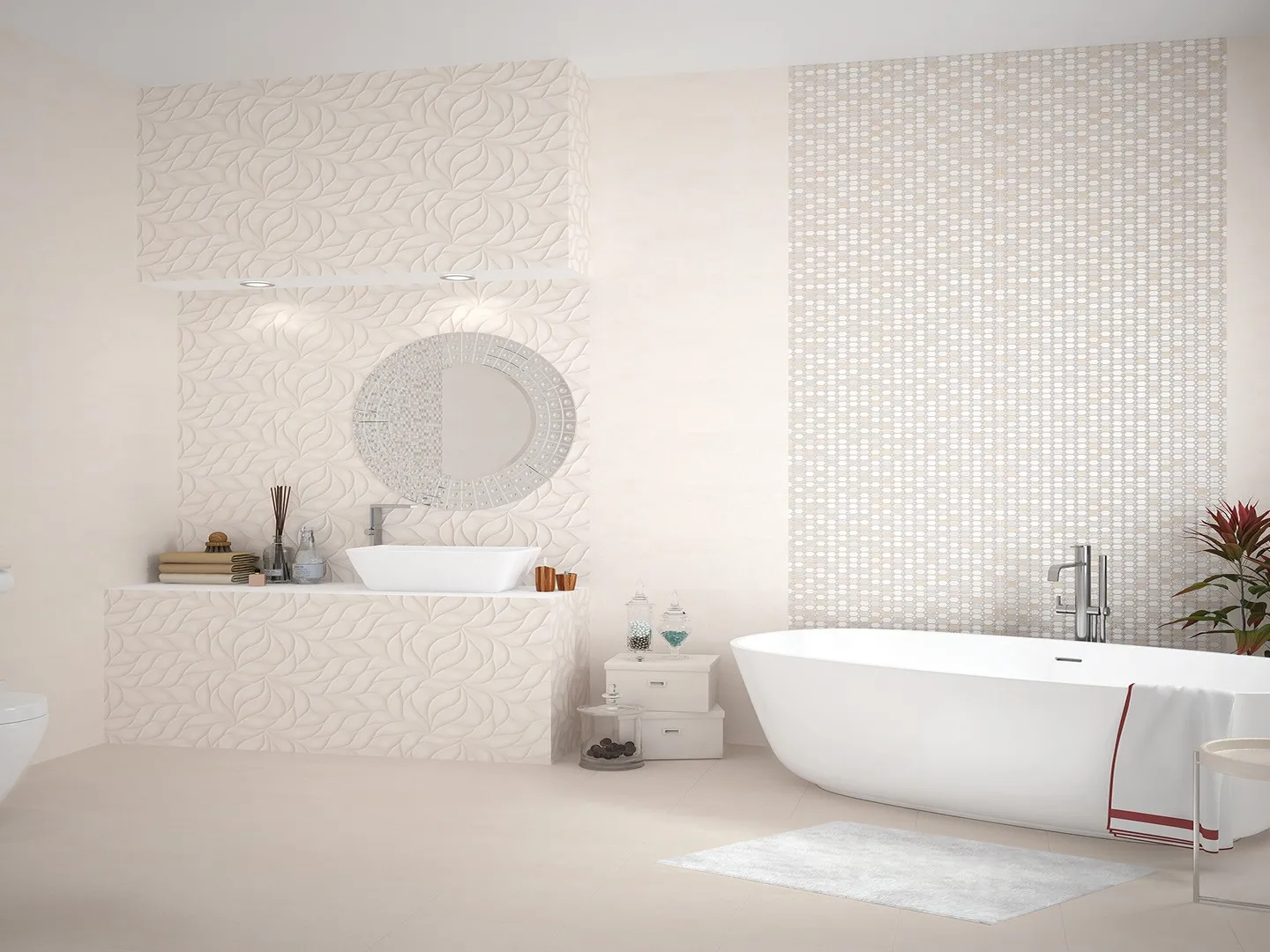 Эта плитка идеально подойдёт для создания современного и стильного интерьера. Благодаря своему геометрическому декору и бежевому цвету, она гармонично впишется в различные стили оформления. Матовая поверхность плитки придаёт ей особый шарм и приятную на ощупь текстуру.
