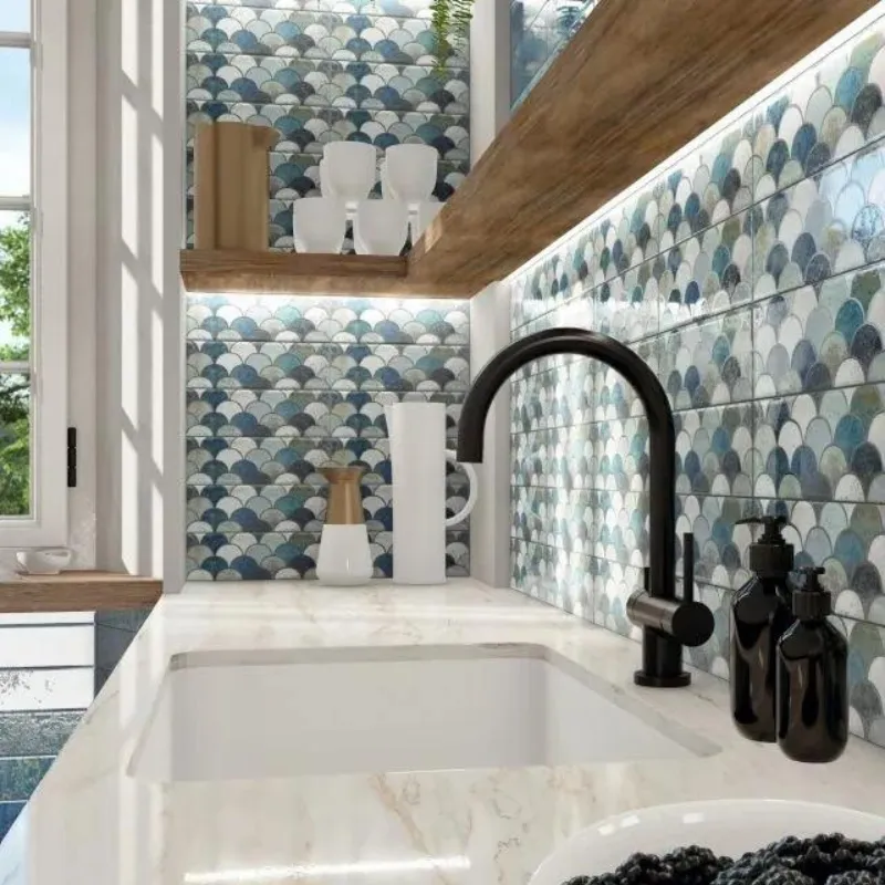 Керамическая плитка Mainzu Bellagio Escama Blu 10x30 станет стильным дополнением к вашему интерьеру. Она отлично подойдёт для ванной комнаты, кухни или прихожей. Глянцевая поверхность плитки придаёт помещению блеск и элегантность. Геометрический узор добавит интерьеру изысканности.