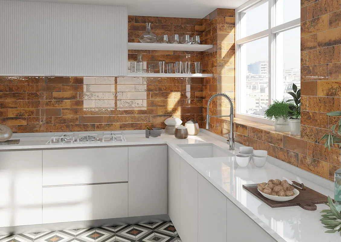 Цвет: коричневый цвет плитки добавит в интерьер тепло и уют, а глянцевая поверхность придаст ему элегантность и блеск.