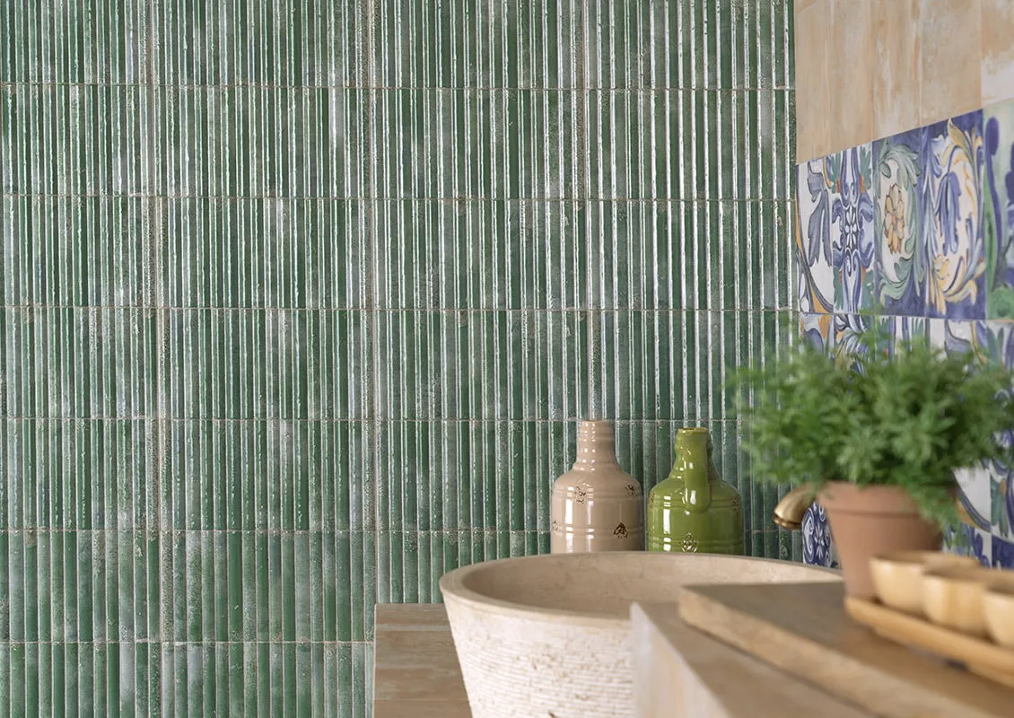 Плитка имеет геометрический рисунок и прямоугольную форму размером 15x30 см. Цвет — насыщенный зелёный, который добавит яркости и свежести в интерьер.