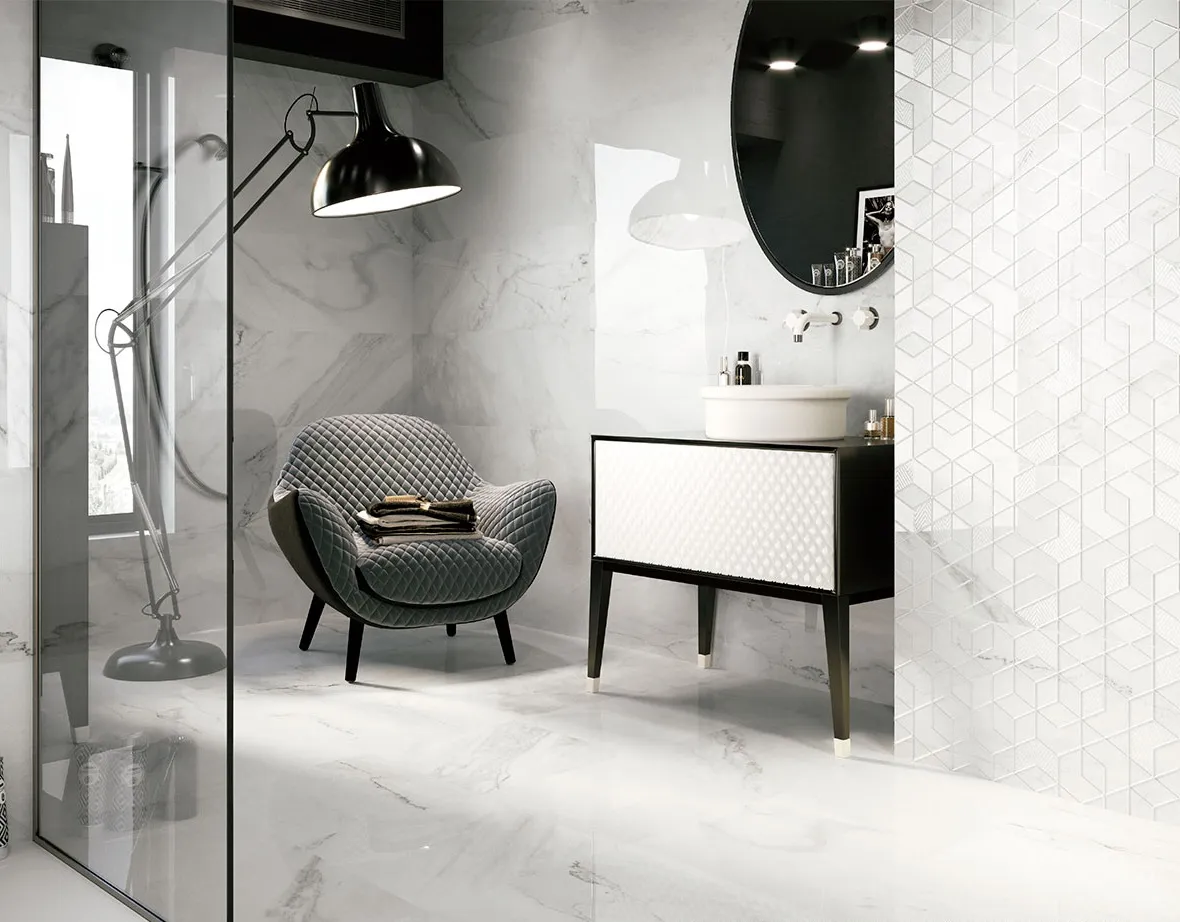 размера 120x40, белого цвета. Данный вид плитки, имитирующий камень,
