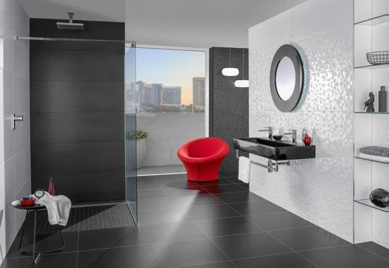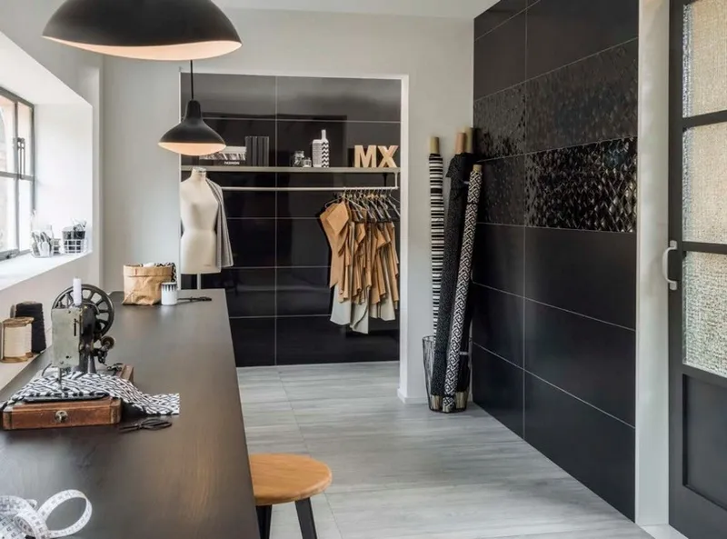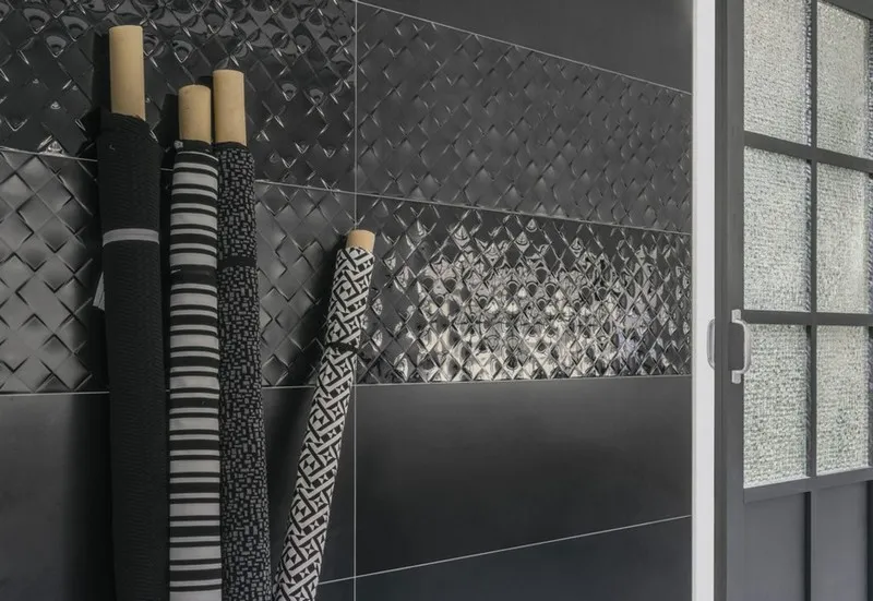 размера 30x60, чёрного цвета. Данный вид плитки, имитирующий мозаику,