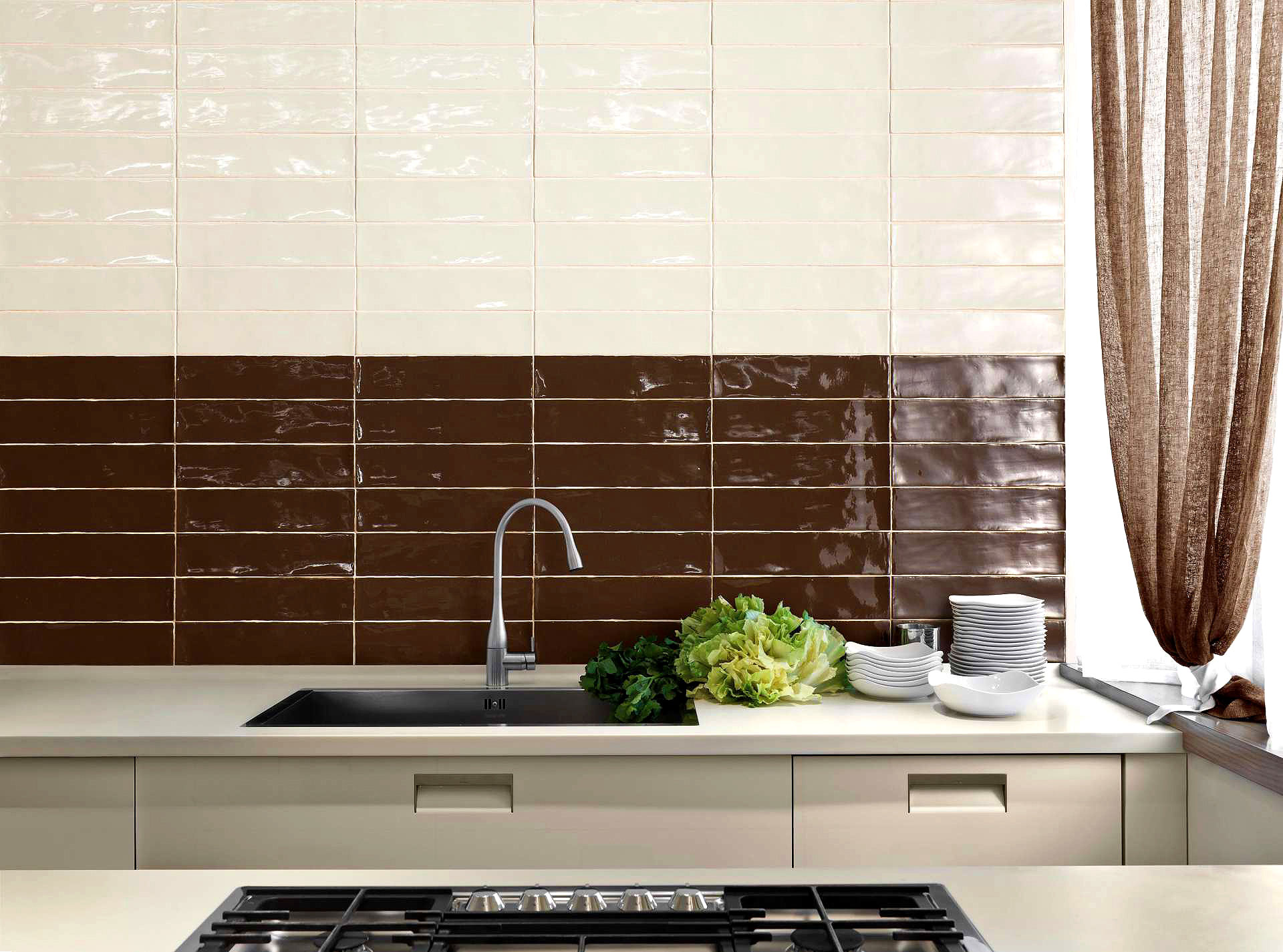 размера 30x7.5, кофейного цвета. Данный вид плитки, одноцветной,