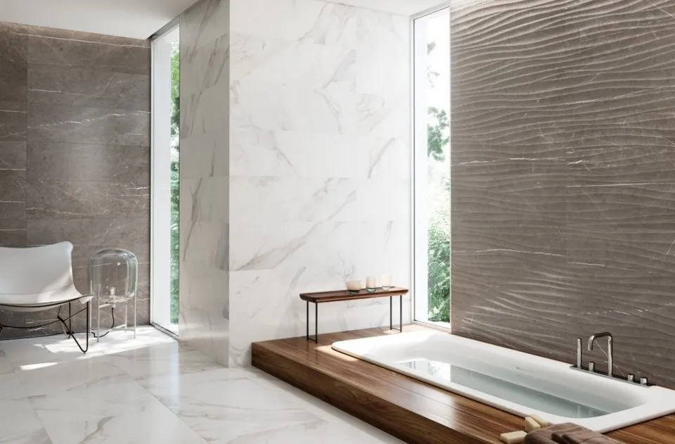размера 30x60, бежевого цвета. Данный вид плитки, имитирующий камень,
