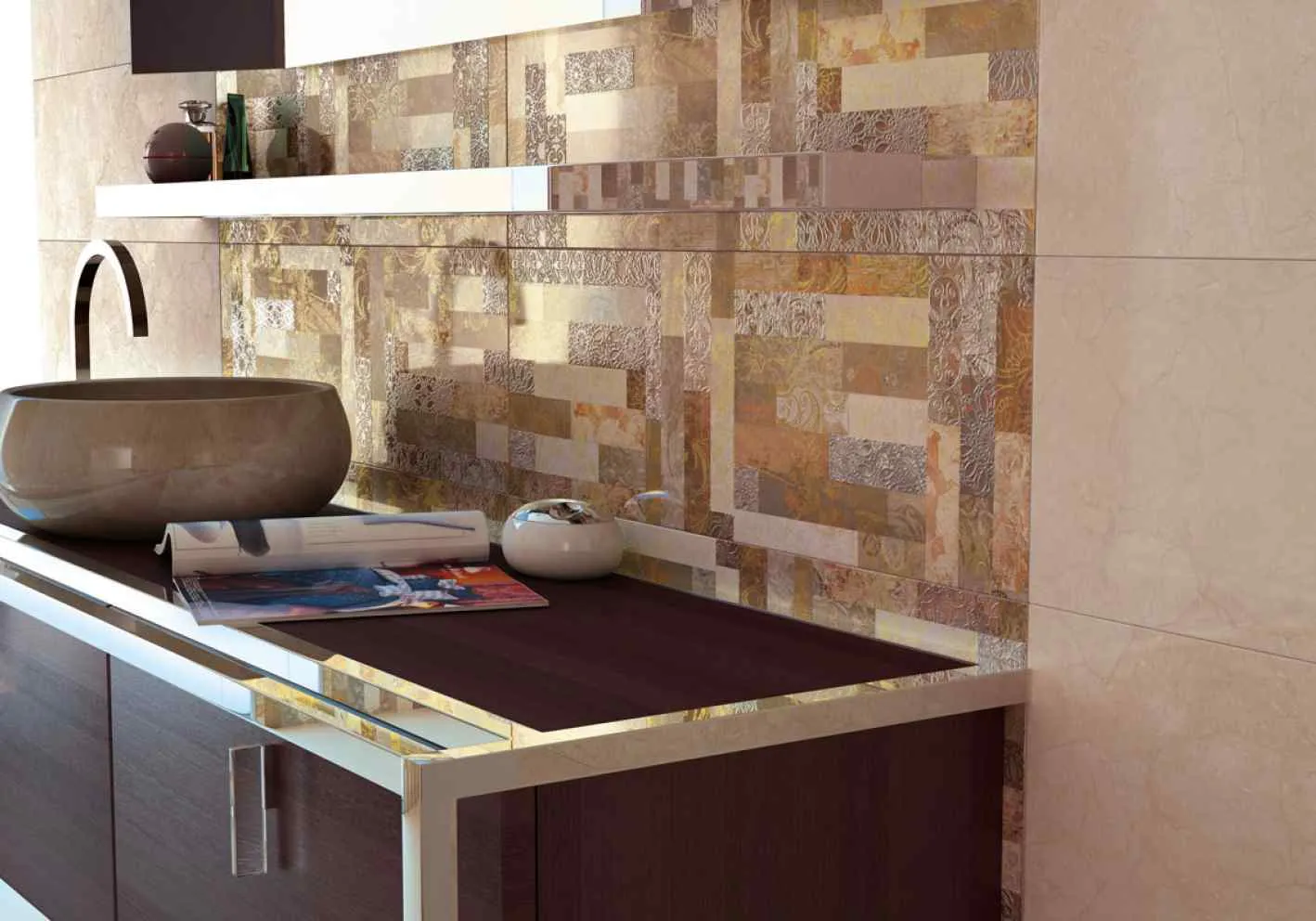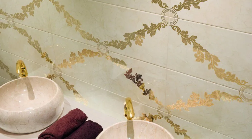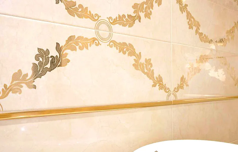 размера 60x15, золотого цвета. Данный вид плитки, с оригинальным орнаментом,
