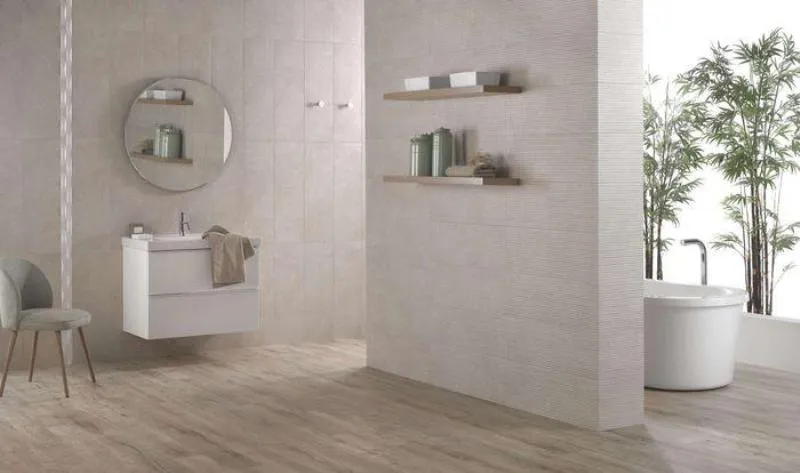 размера 25x75, бежевого цвета. Данный вид плитки, с рисунком в виде полос,