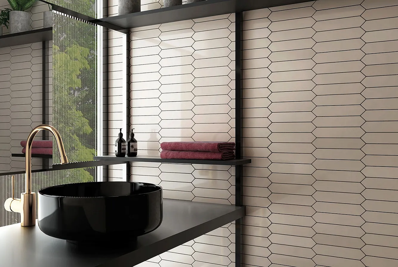 Испанская, глянцевая плитка 25823 Arrow Blush Pink 5x25 прямоугольной формы,
