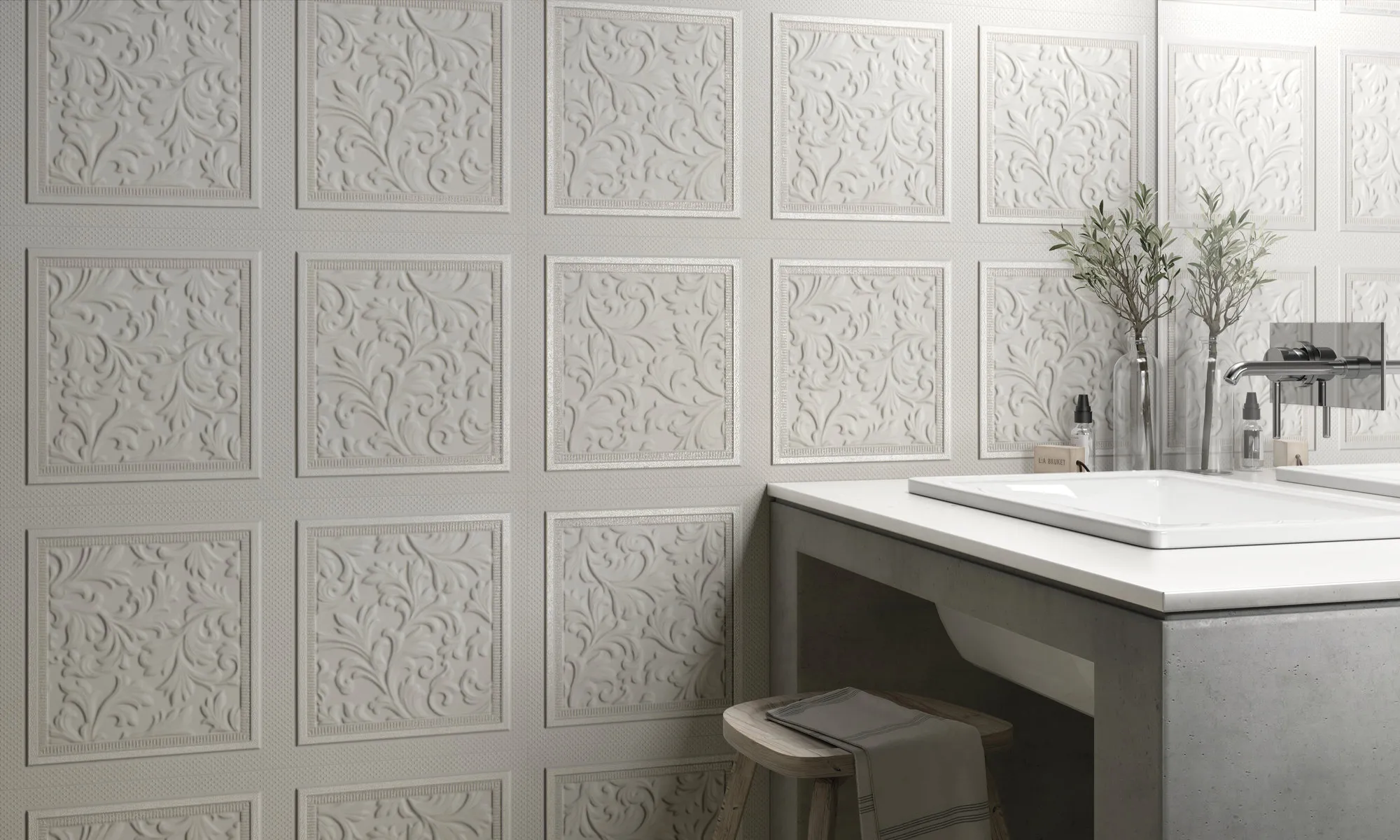 размера 3x90, бежевого цвета. Данный вид плитки, с рисунком в виде полос,