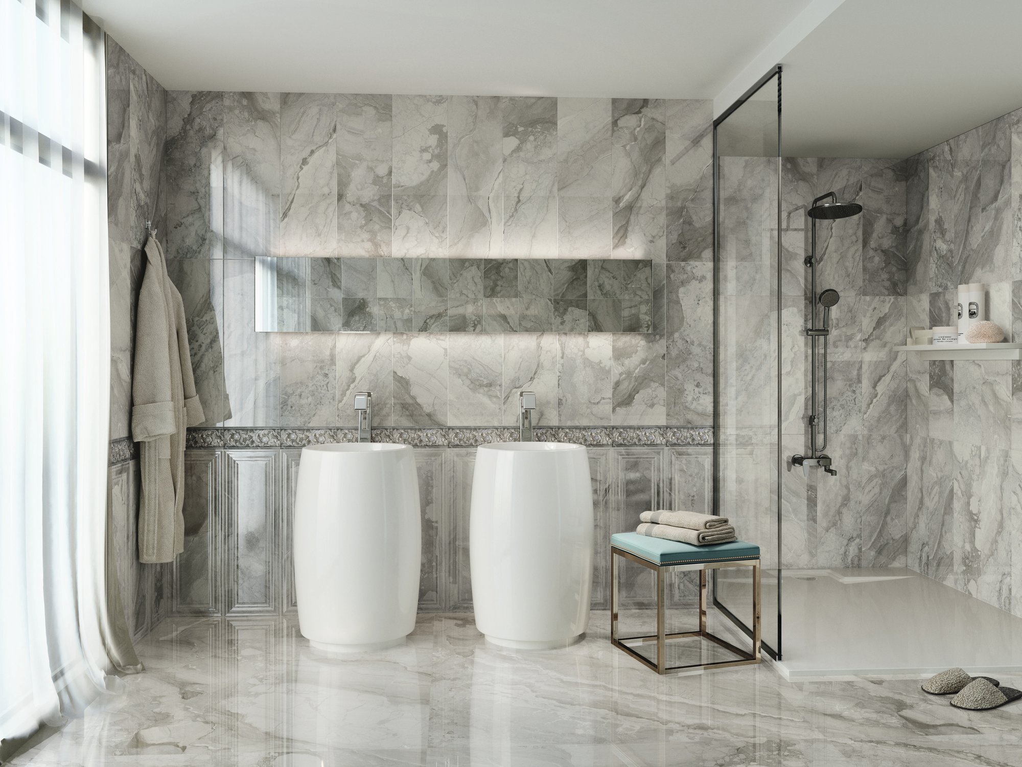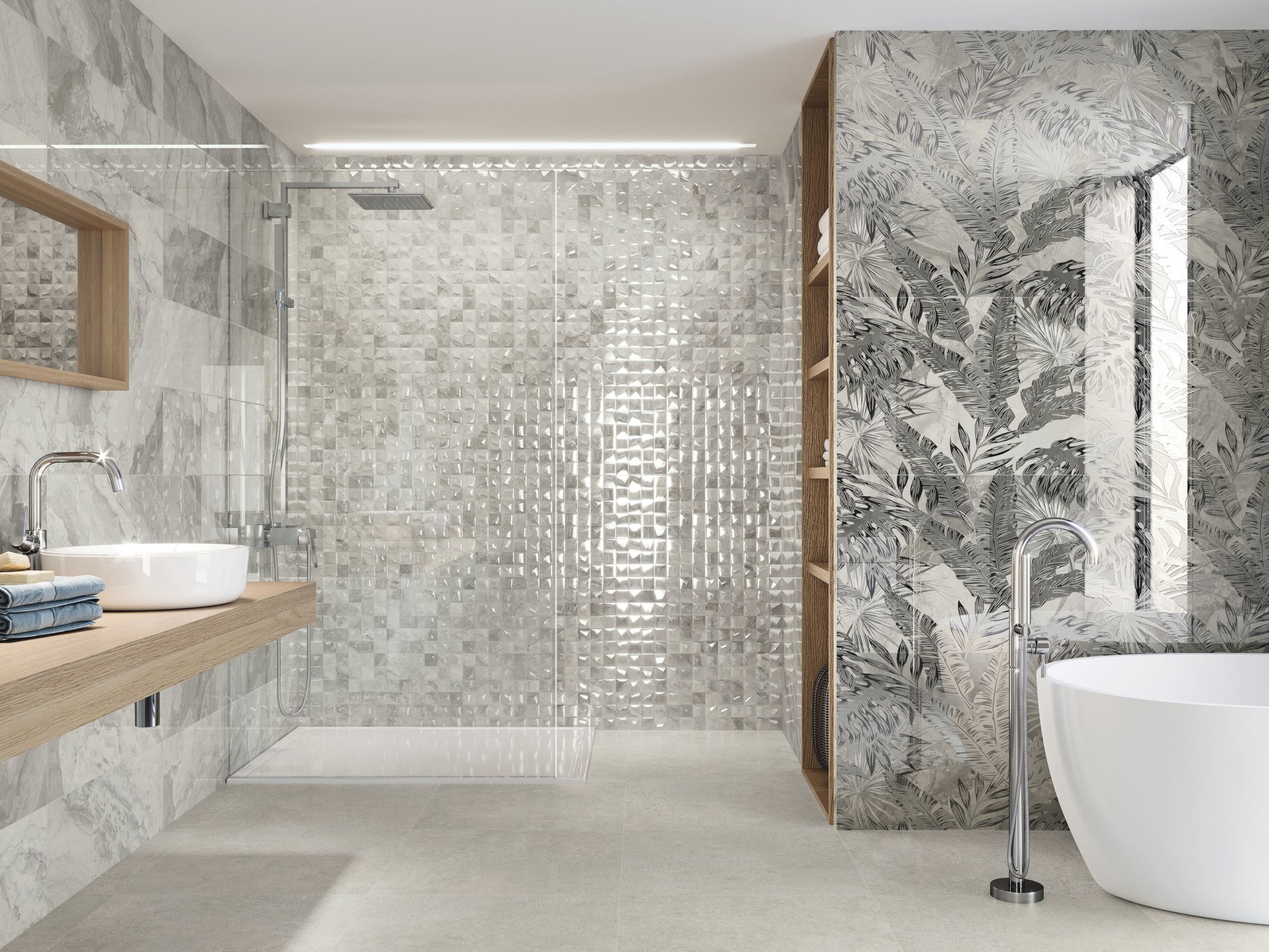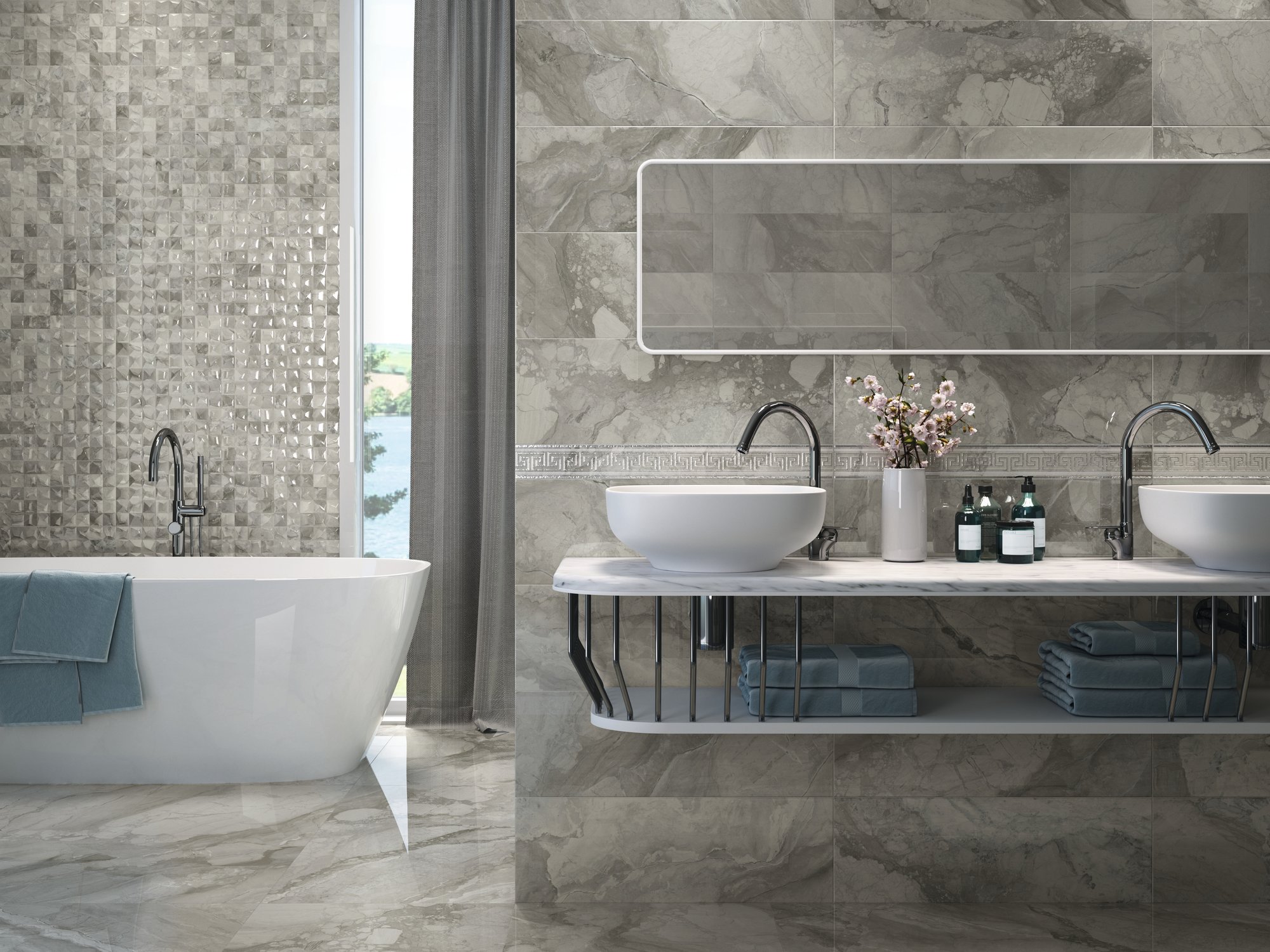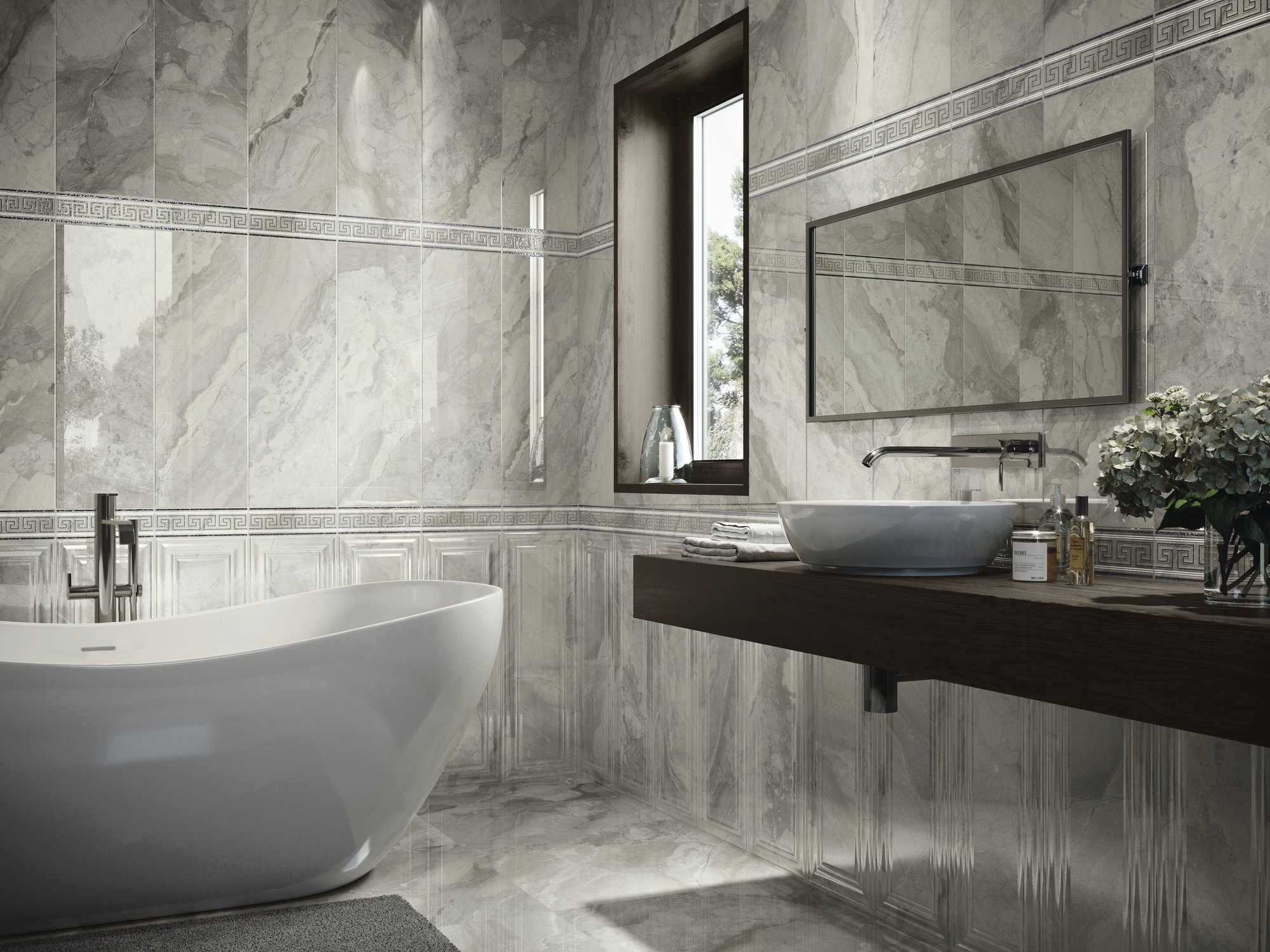 размера 25x75, серого цвета. Данный вид плитки, имитирующий камень,