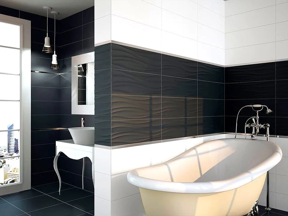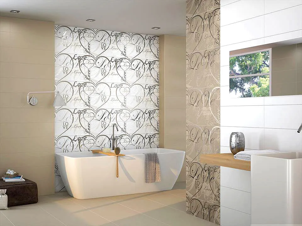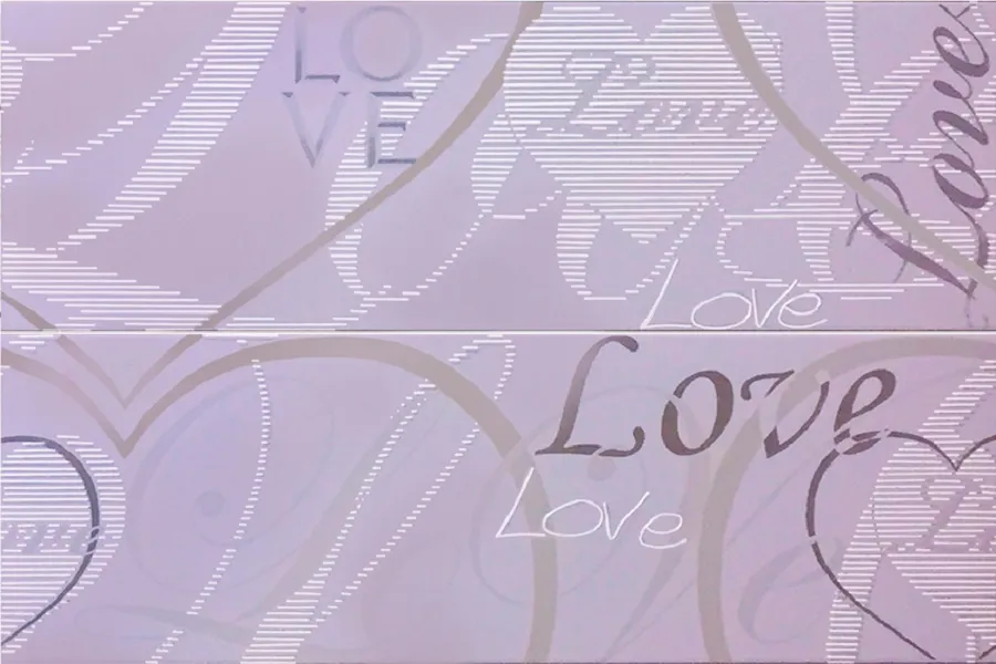 размера 20x60, фиолетового цвета. Данный вид плитки, с рисунком в виде текста,
