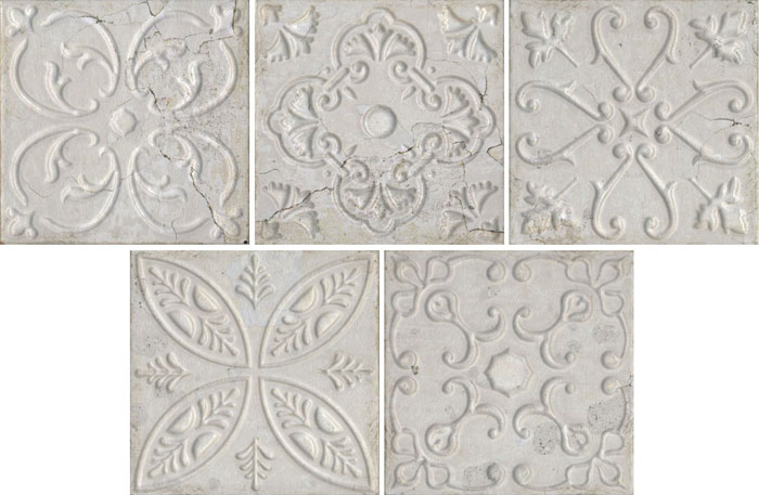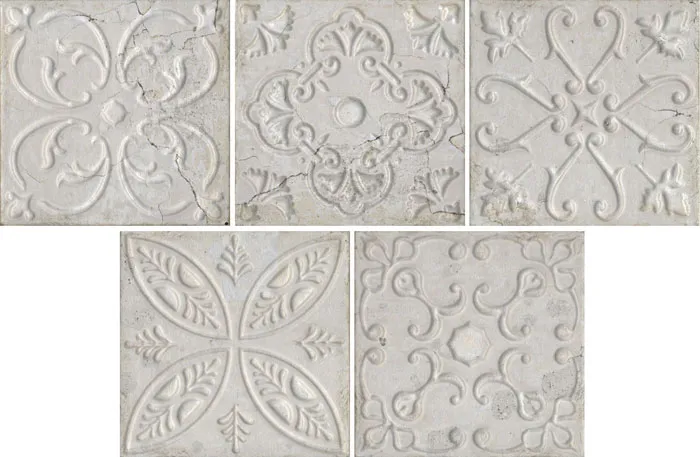 Испанская, матовая плитка Aged White Ornato Mix 20х20 квадратной формы,