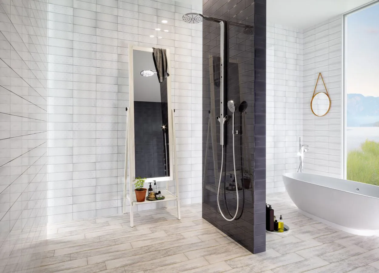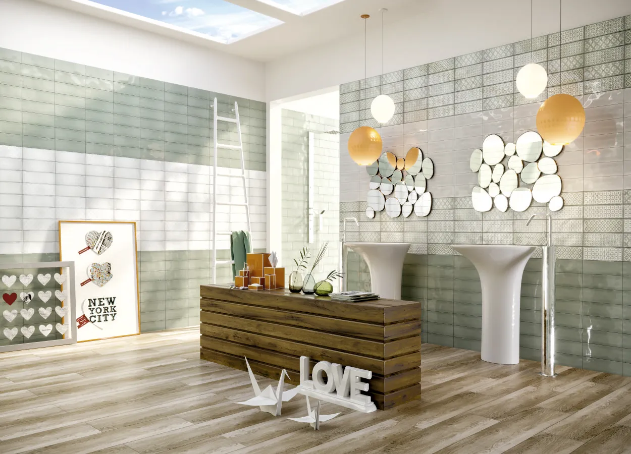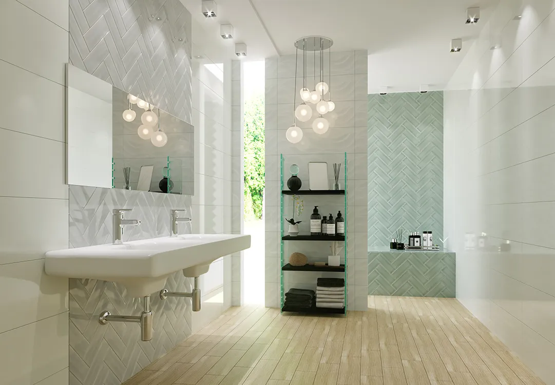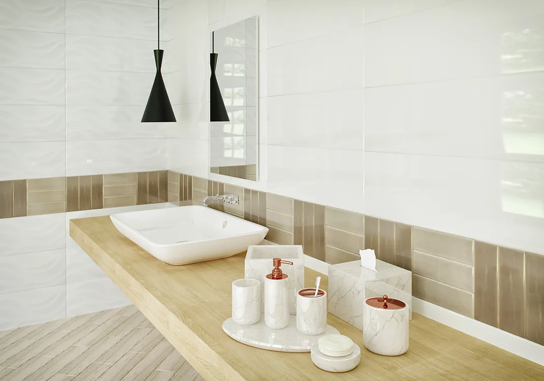 Испанская, глянцевая плитка Aria Santorini Ice 10x30 прямоугольной формы,