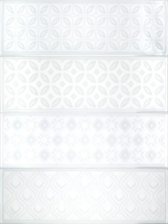 размера 10x30, белого цвета. Данный вид плитки, с оригинальным орнаментом,