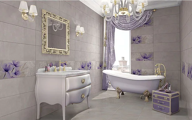 размера 60x50, серого цвета. Данный вид плитки, с цветочным рисунком,