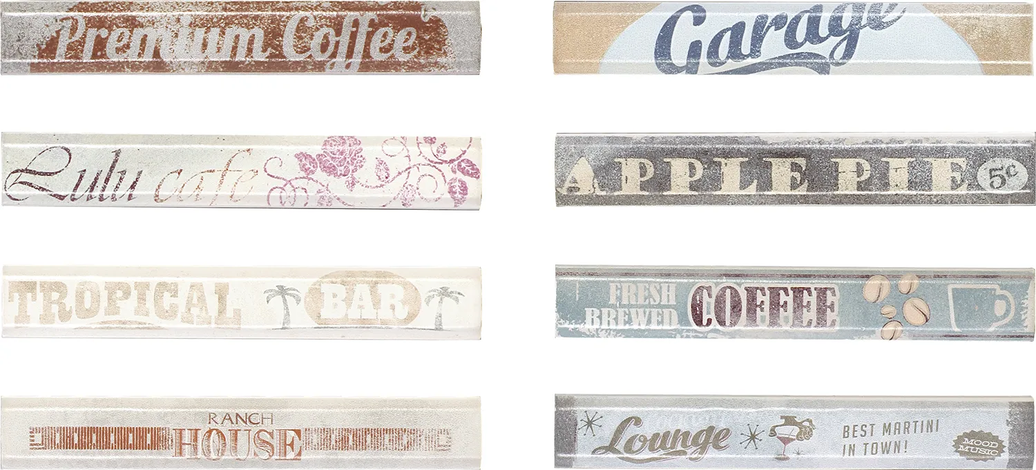 размера 20x3, бежевого цвета. Данный вид плитки, с рисунком в виде текста,