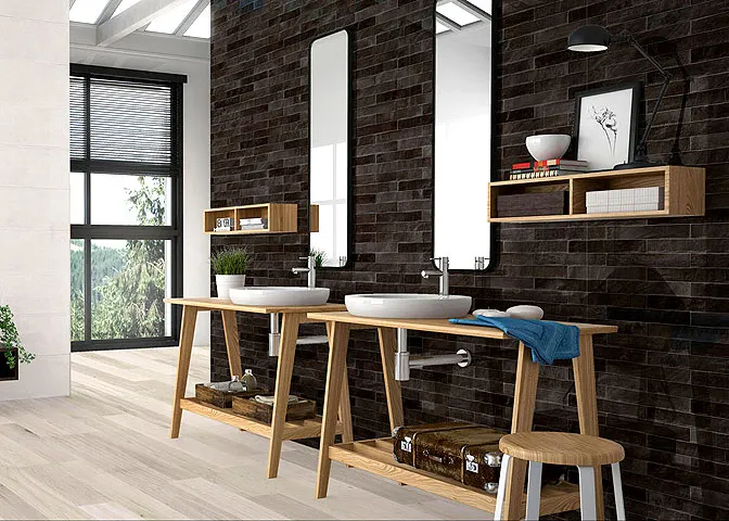 размера 75x25, чёрного цвета. Данный вид плитки, имитирующий кирпич,