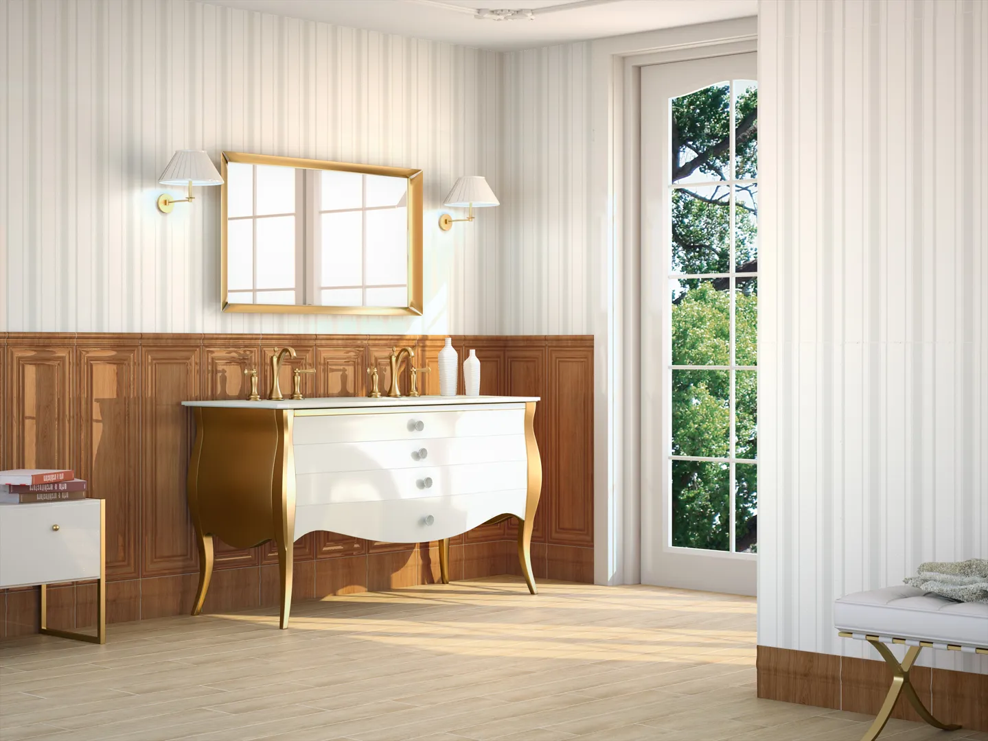 размера 29.5x90, кремового цвета. Данный вид плитки, имитирующий обои,
